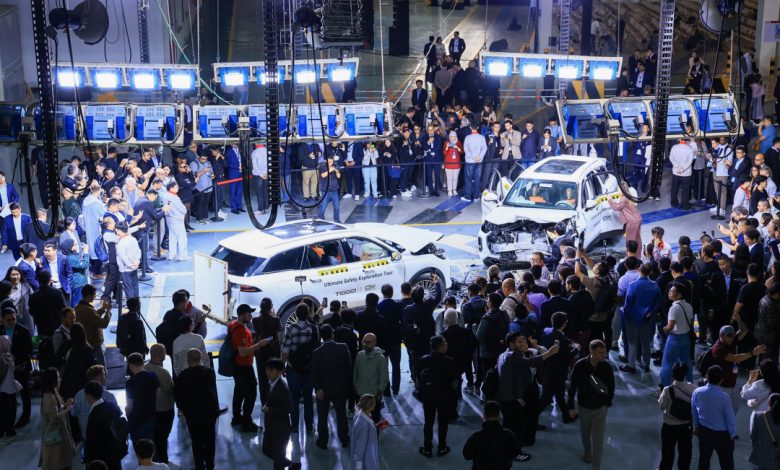 As part of its Chery Ultimate Safety Exploration Tour, Chery staged a live 15-degree small-overlap collision between two TIGGO 9 SUVs at the Longshan Test Centre, demonstrating what the brand says is the model’s structural integrity and post-crash safety systems in front of more than 500 guests and media representatives.The on-site demonstration accelerated both TIGGO 9 vehicles to 50 km/h each before impact — a combined collision energy deliberately chosen to mirror real-world urban and suburban crashes and equivalent to a single vehicle striking a solid barrier at approximately 100 km/h.