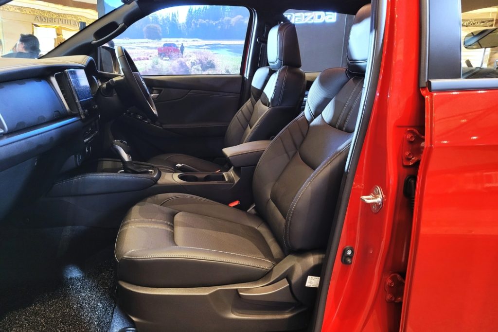 Inside, Mazda’s Jinba-Ittai philosophy brings harmony between driver and machine. The cabin feels more premium SUV than pickup — with soft-touch materials, clean symmetry, and redesigned seats that balance comfort and durability.