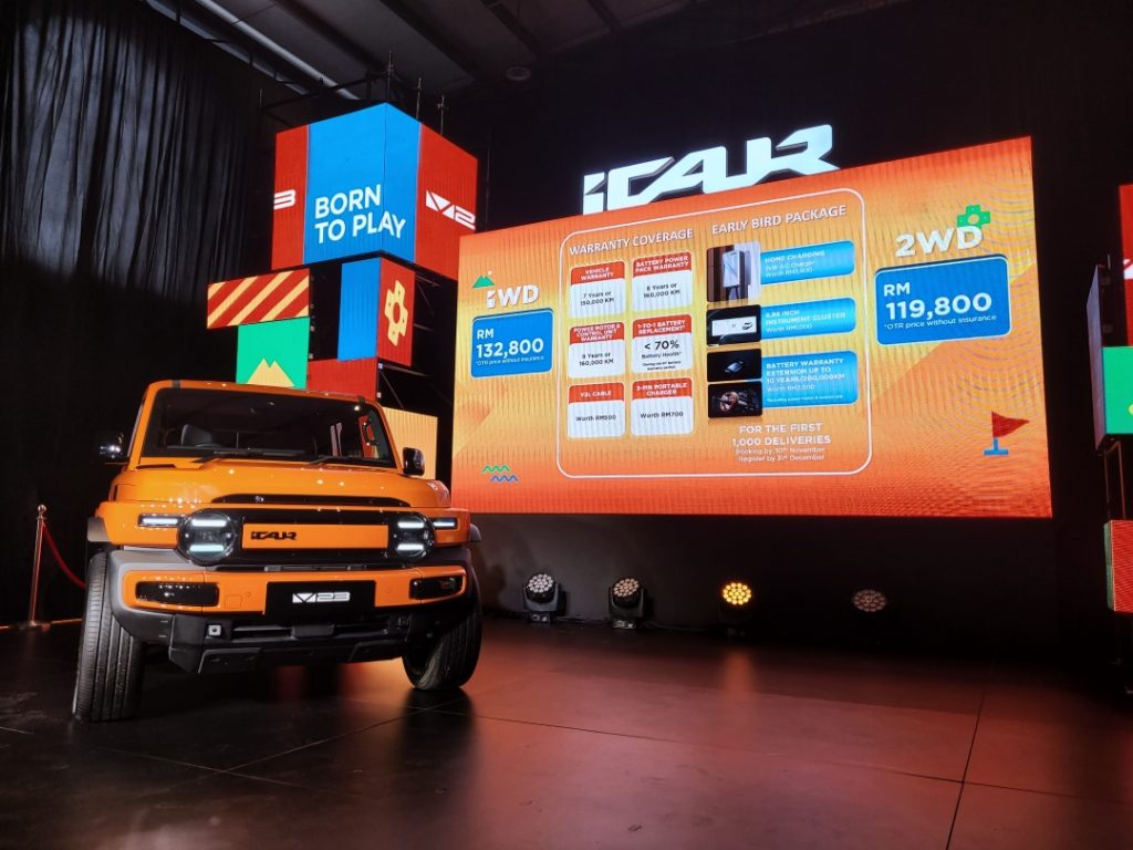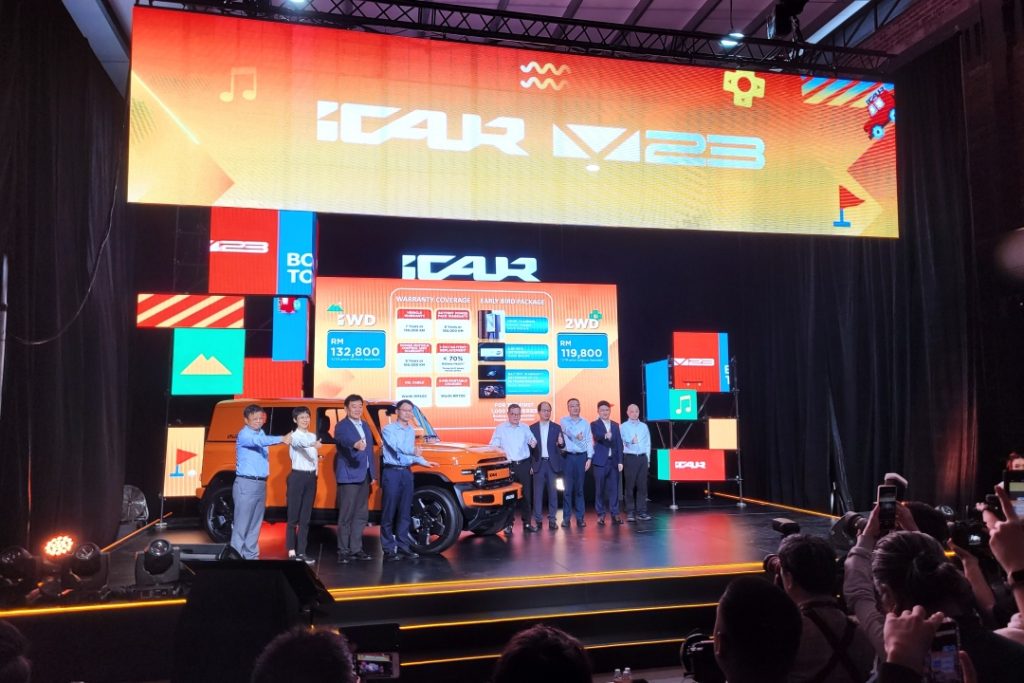 A C-segment, body-on-stance SUV from Chery’s EV sub-brand iCAUR – the brand’s second model for Malaysia after the 03. Think Jimny vibes, but silent and zero-emission. Also, the brand calls it “V Two-Three”.