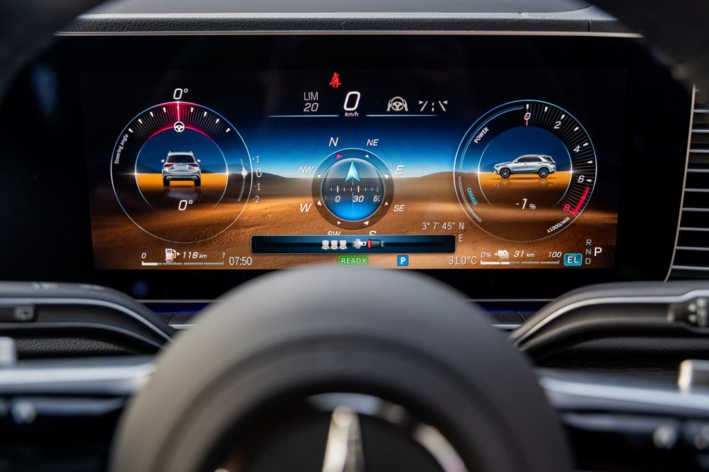 The GLE 400 e 4MATIC features a plug-in hybrid powertrain capable of delivering an all-electric driving range of up to 114 km (WLTP), depending on driving conditions. This allows most daily urban journeys to be completed without using the petrol engine.