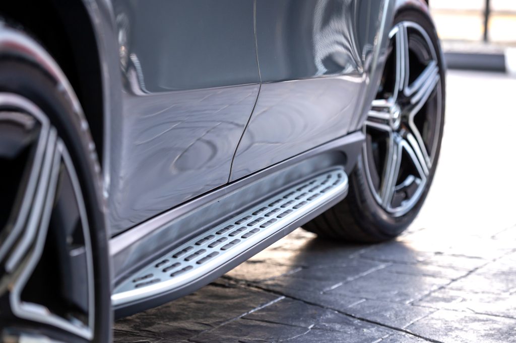 - Illuminated aluminium-look running boards