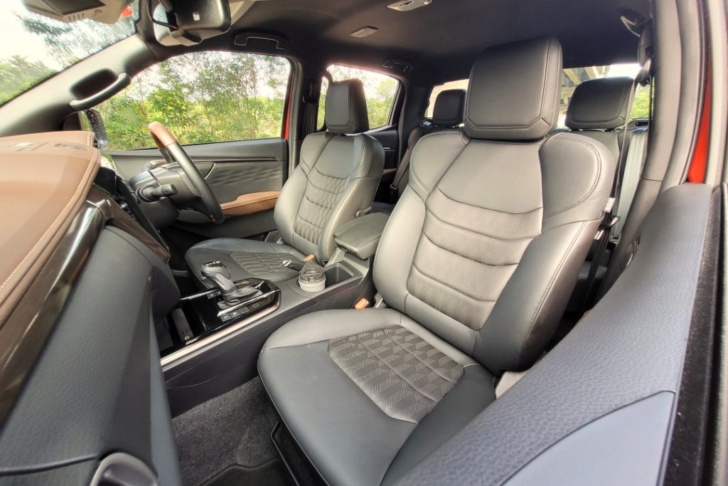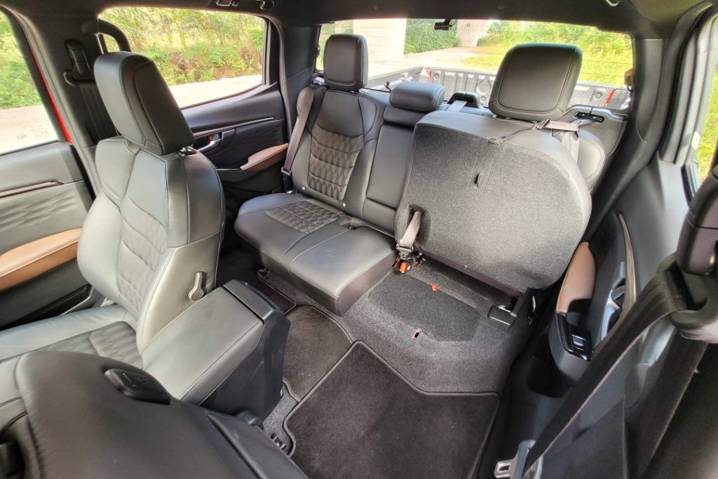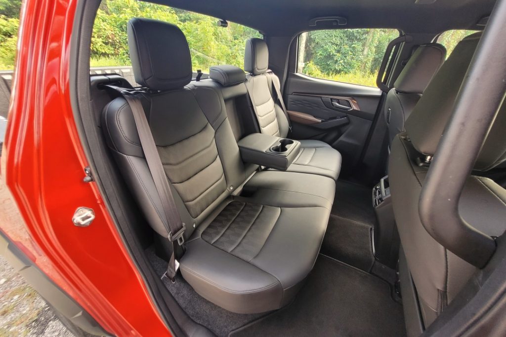 Rear passengers get decent space for a pickup, plus rear air vents and under-seat storage. The backrest angle is still more upright than an SUV, but for family use and daily commuting, it’s perfectly livable.