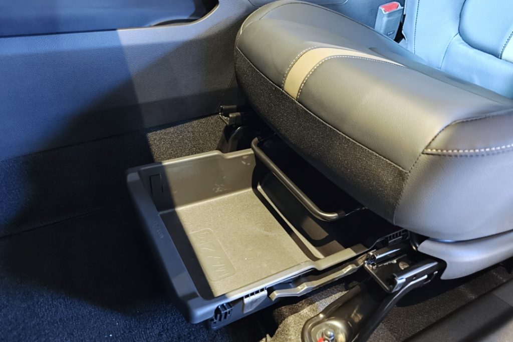 Look around the cabin and you will find retro touches such as physical buttons for climate control, door lock pins, Pajero Dials in the infotainment screen, and even a crotch knee cooler under the steering column.