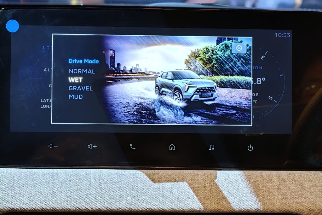 A few technical notes Mitsubishi shared that matter in everyday use: the CVT’s forward ratio has a wide spread that helps balance acceleration and economy. Software tuning includes a “step-up” shift logic to make the CVT feel more like an 8-speed automatic under heavy throttle, and specific uphill/downhill ratio schedules: Mitsubishi claims around 25% improvement in uphill driving force versus the Xpander and reduced downhill acceleration (about 10% restraint) to reduce brake usage on descents.