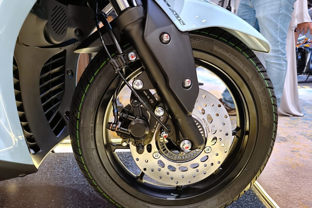 Aveta has put emphasis on rider confidence with the Nova 200. The scooter comes equipped with front and rear disc brakes, backed by both ABS (Anti-lock Braking System) and TCS (Traction Control System).