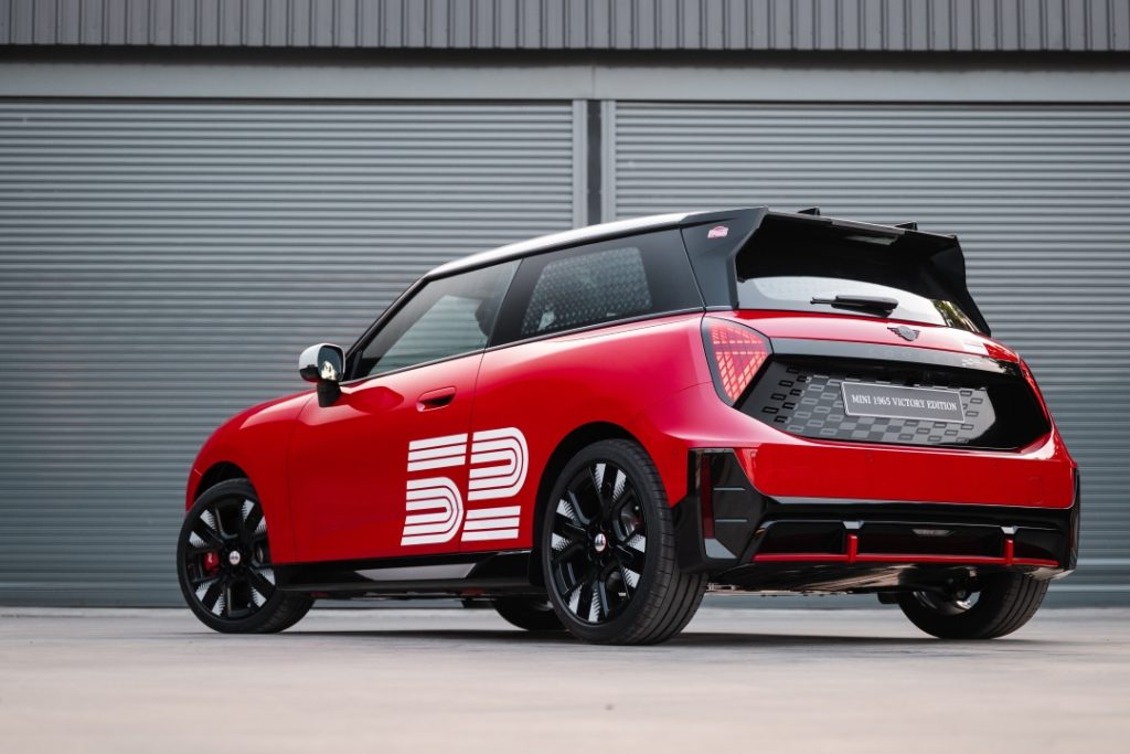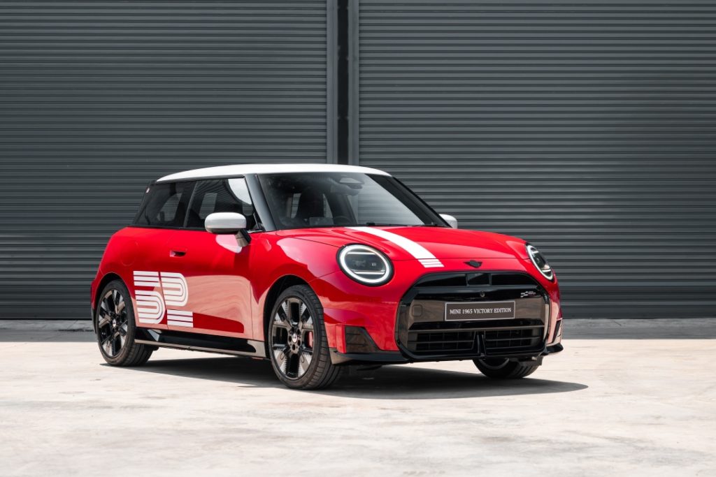 The MINI 1965 Victory Edition is based exclusively on the All-Electric MINI John Cooper Works, bringing one of the brand’s most celebrated victories into the EV era.