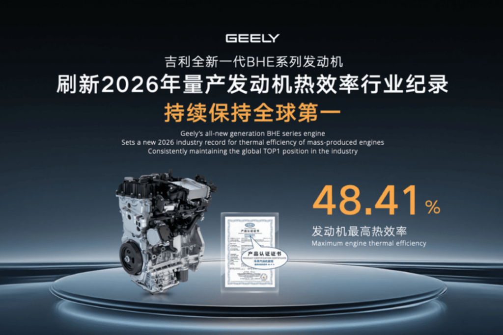 Geely claims the dedicated hybrid engine achieves 48.4% thermal efficiency, placing it among the highest for a mass-produced system today.